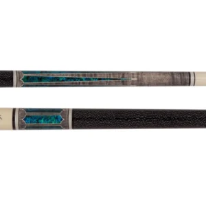 - The cue is adorned with intricate blue Paua shell inlays, creating a visually captivating look. Paua shell, known for its vibrant iridescence and deep blue tones, adds a layer of elegance and uniqueness to the cue’s design.