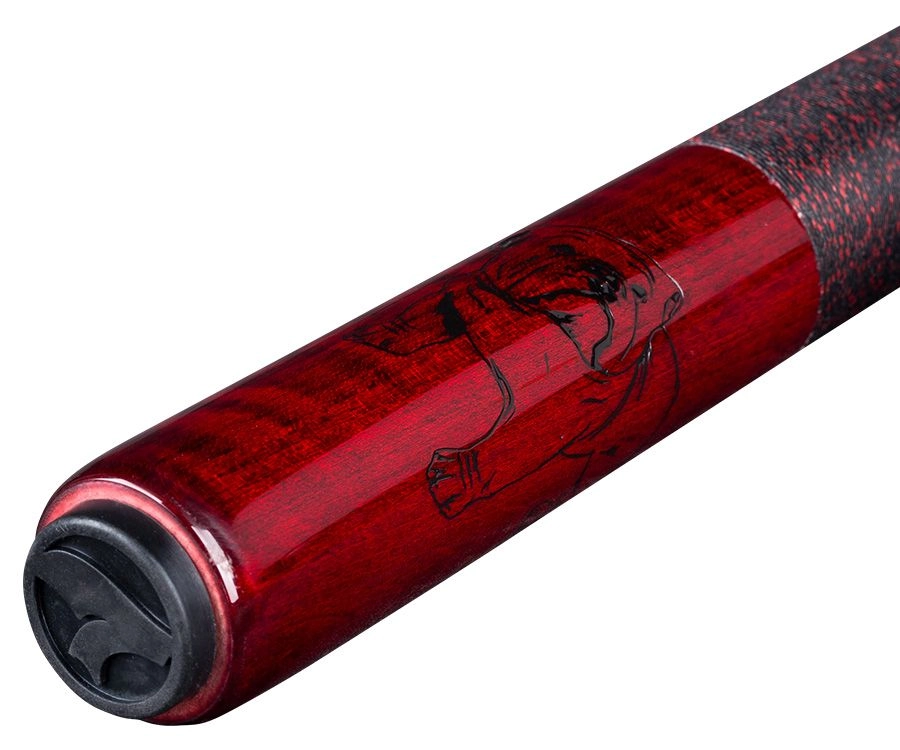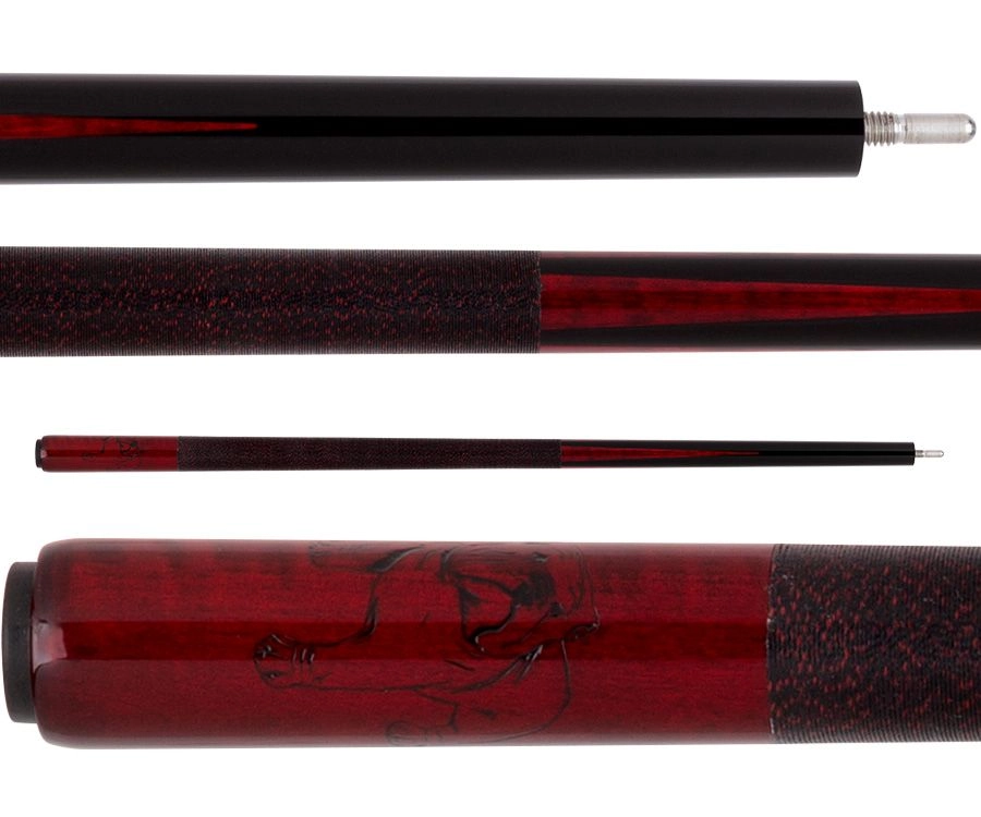 Built by Viking, features engravings with our logo as well as our mascot, Frank the dog! The black forearm of the cue is complemented by four red stained points. viking pool cues. It comes with a hard rock maple shaft in the Viking Quick Release joint. you’ll definitely love this cue!